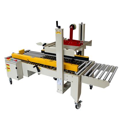 十字封箱機是一款組合型設(shè)備,主要是采用我們常用的半自動封箱機或折蓋封箱機完成一字封箱,然后通過側(cè)推機構(gòu)將紙箱進(jìn)行90°轉(zhuǎn)向,然后進(jìn)入半自動封箱機完成十字封箱包裝。
